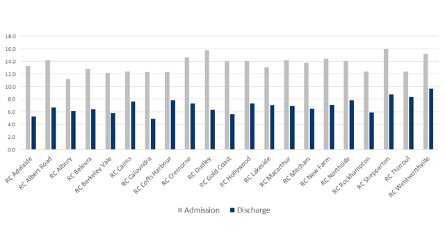 Mental health outcomes HoNOS discharge score (A lower score on discharge is better)